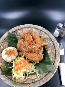 Lightly battered and deep-fried chicken wings with garlic and tossed with our signature ...